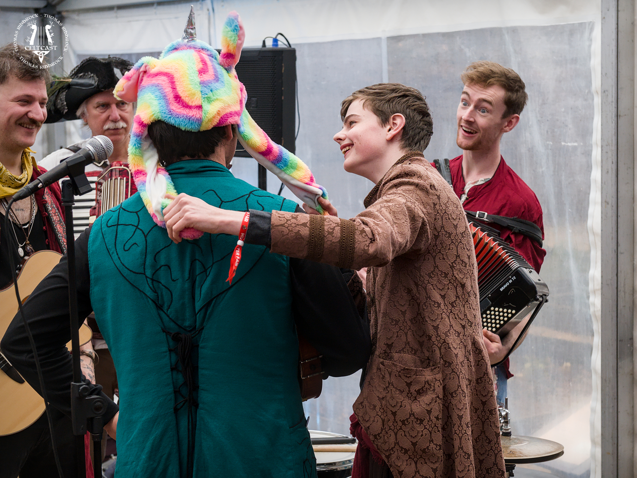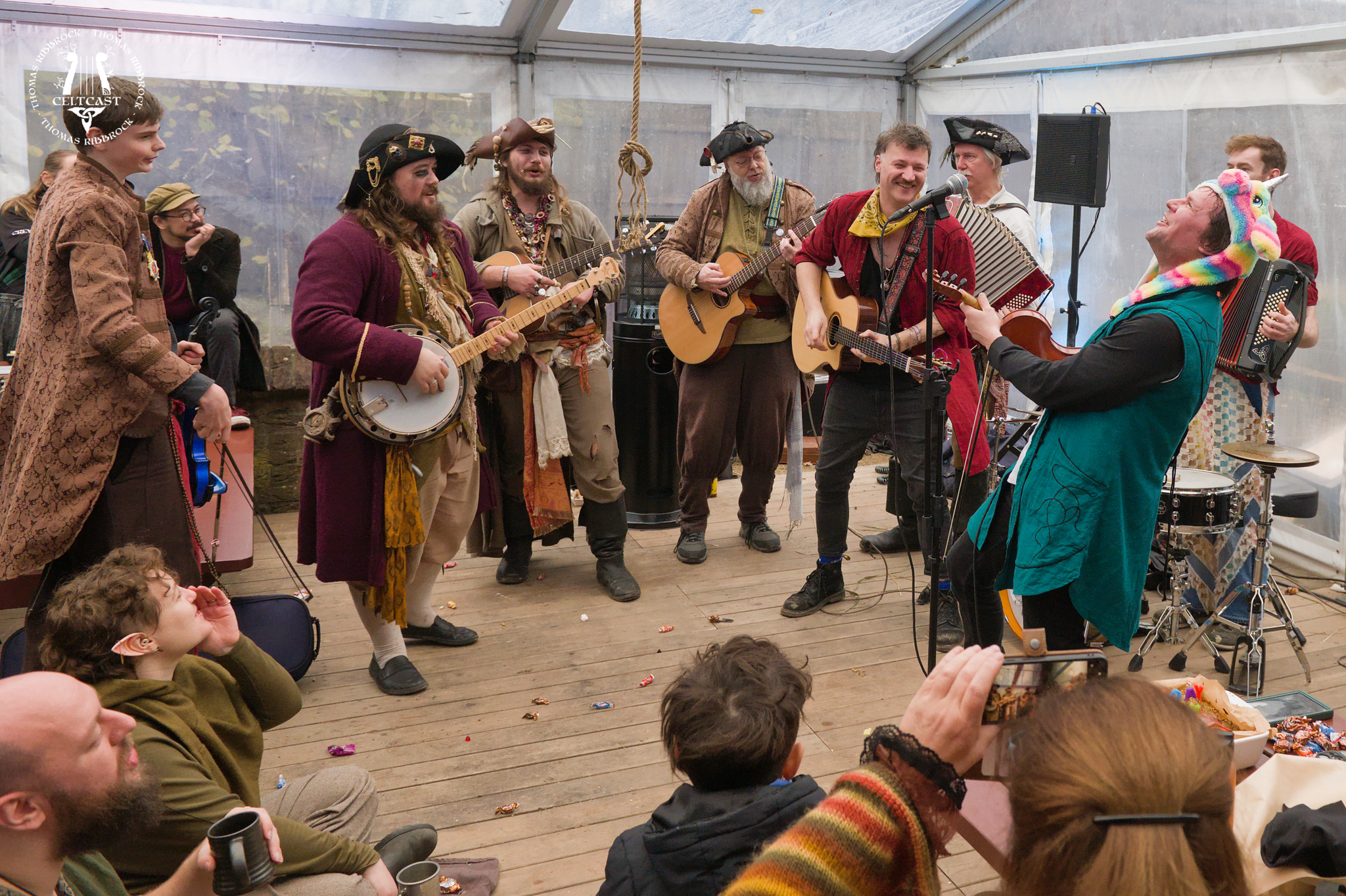 The schedule of Midwinter Fair Archeon 2025 said "The Trouble Notes" for the Sunday afternoon in the Maanhof-tent... ...well, they were certainly present when I got there - and so were many of their friends (like for example Pirates' Picnic), resulting in one big, wild, funny, wonderful birthday-party for Bennet (pity I missed the highlight of the party, it seems... ...but still plenty of fun to be had!).