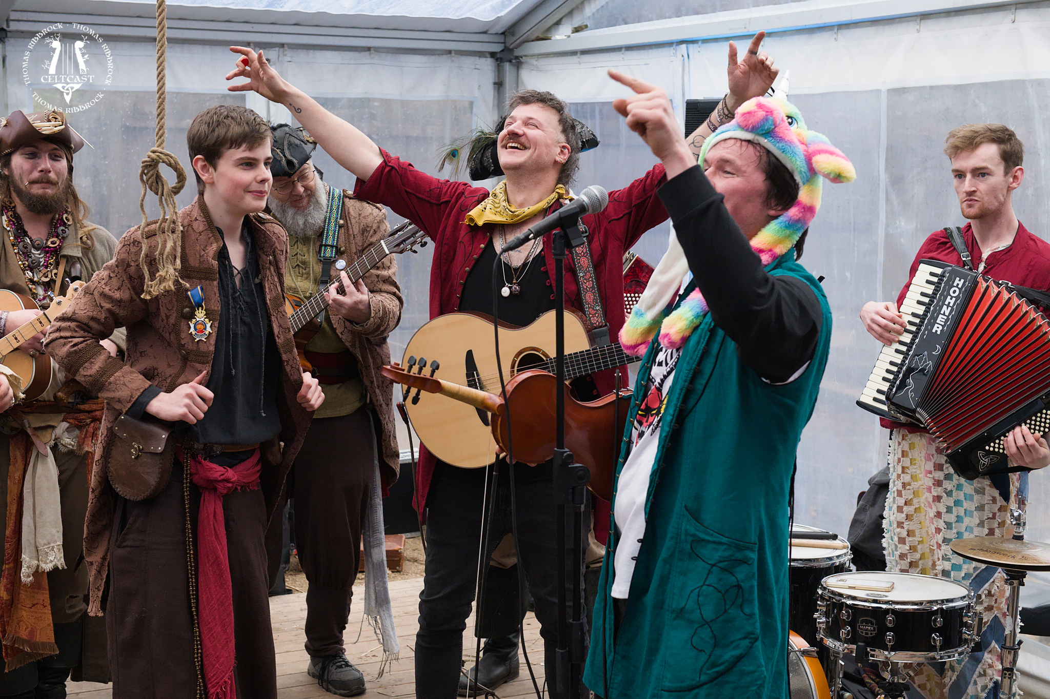The schedule of Midwinter Fair Archeon 2025 said "The Trouble Notes" for the Sunday afternoon in the Maanhof-tent... ...well, they were certainly present when I got there - and so were many of their friends (like for example Pirates' Picnic), resulting in one big, wild, funny, wonderful birthday-party for Bennet (pity I missed the highlight of the party, it seems... ...but still plenty of fun to be had!).