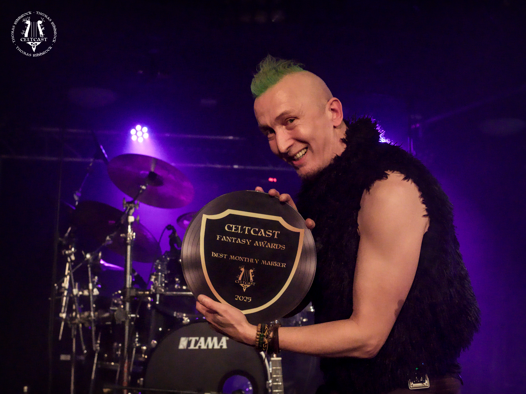Der Off Limits-Auftritt begann mit einer Überraschung für eines der Bandmitglieder, Marcus Friedeberg – er erhielt seinen CeltCast Fantasy Award für den „Best Monthly Marker 2025“, der ihm bereits bei der Preisverleihung im Februar verliehen worden war! (Ein großes Dankeschön an die anderen Bandmitglieder und den Bühnenmanager, die dies möglich gemacht haben!)